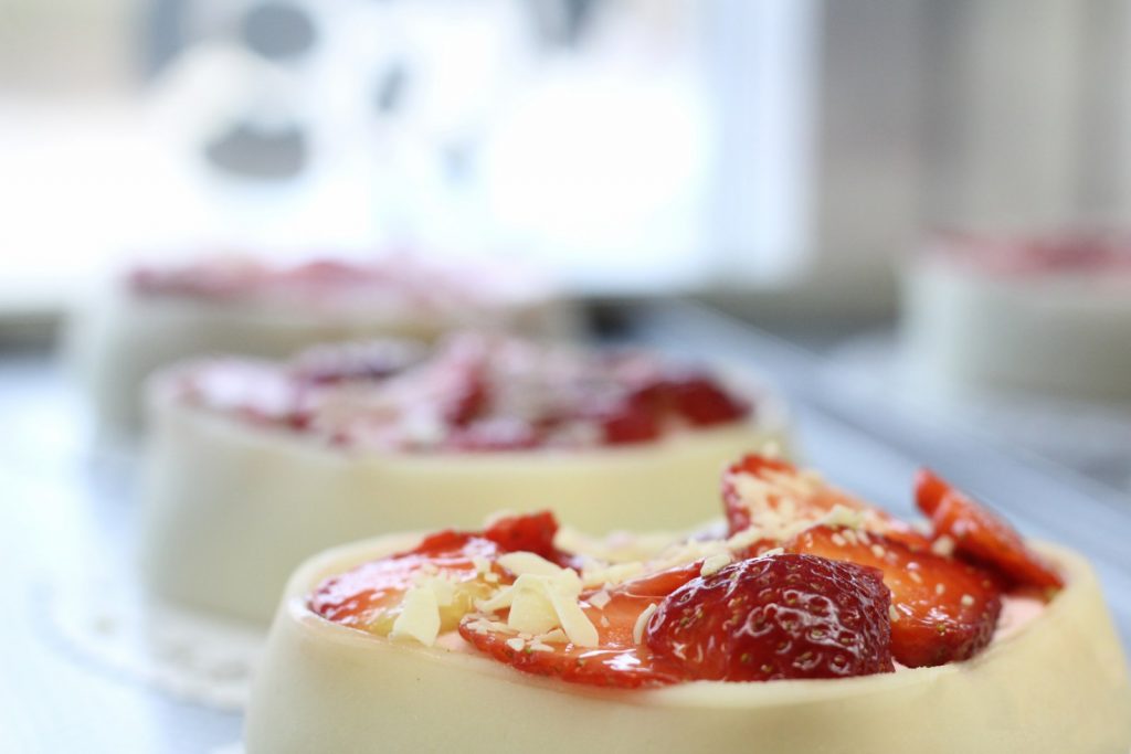 lysebunde, hindbærmarmelade, makroner, flødecreme, chokodrys top, fløde siden
